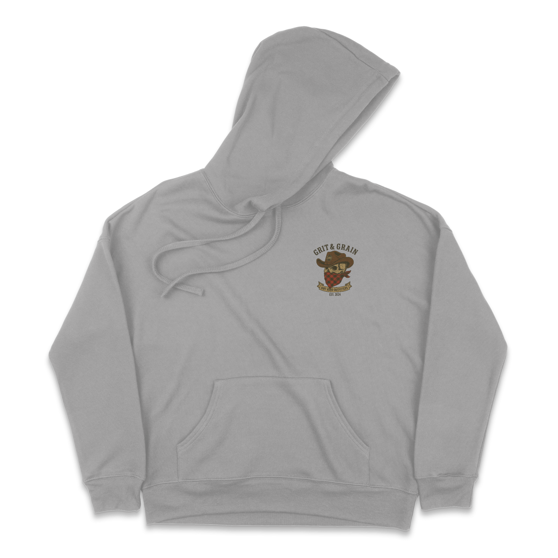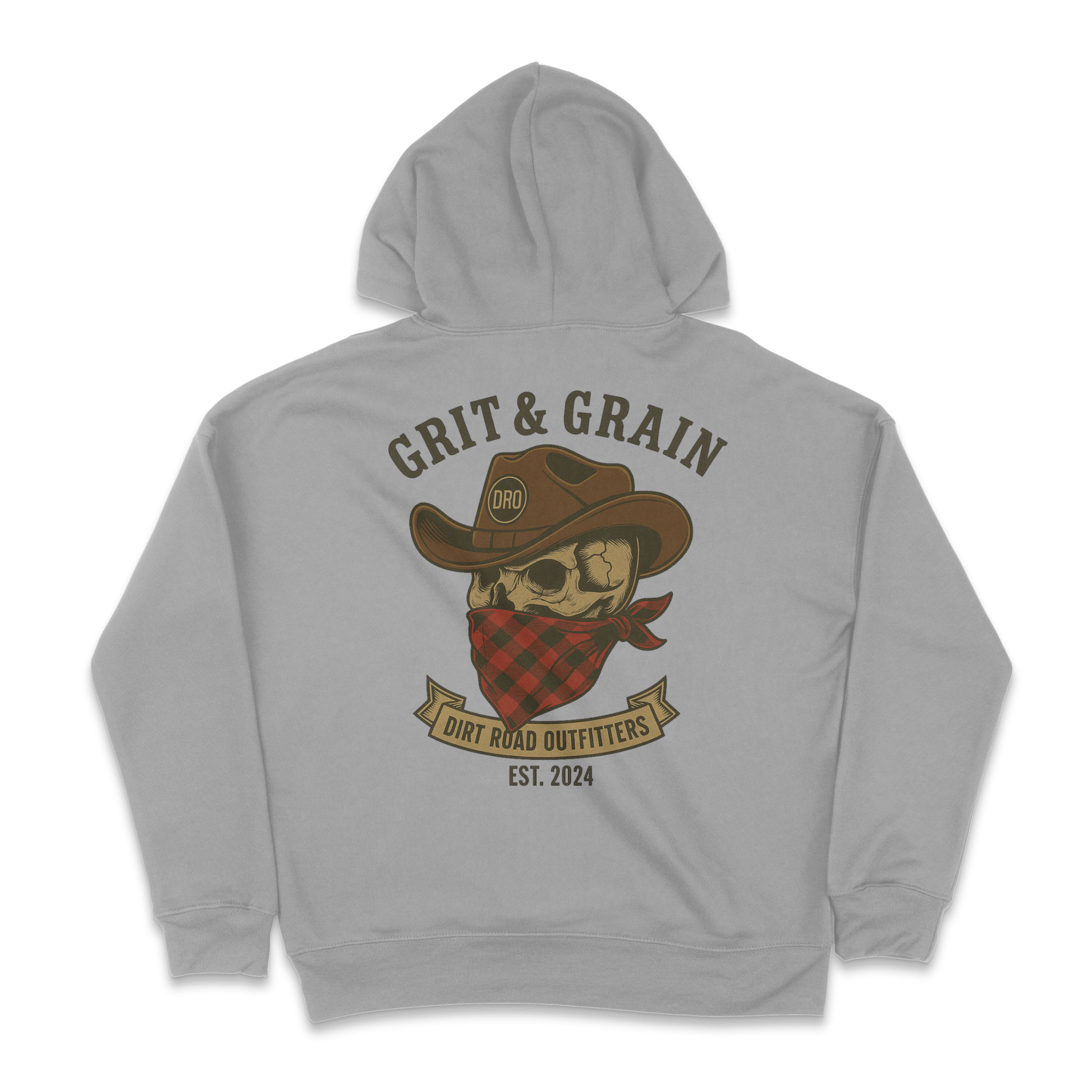 Ride hard. Work harder. The Grit & Grain hoodie is built for anyone who measures life in dust clouds and dawn patrols. Front left-chest hit keeps it low-key; the full-back graphic screams legacy.